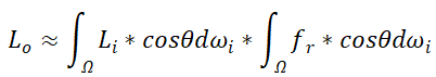 基于图像照明技术Image Based Lighting,顾名思义,就是将当前物体环境下的光照结果进行预计算后,在光栅化下进行实时采样的过程。上文中实际上一个像素点的光照计算,本质上是一个积分,我们计算直接光照就是仅仅执行某一个方向微元上的未积分的结果,那么预计算本质上是将当前物体所处环境贴图预积分,然后在实时渲染中采样该积分即可,在本文章中并不会计算预积分贴图,详情请看上一篇博客(发早了,这一篇理论上是上一篇的铺垫)。因为在unity中,预积分后的环境贴图已经提前算好了,并不需要我们自己插手计算,在本文中我们专注于采样结果即可,在下一篇文章中,我将简单论述Unity中的预积分技术(不包括次表面散射的预积分贴图)。首先对于上文中的BRDF与Radiance的积分,存在拆分近似: