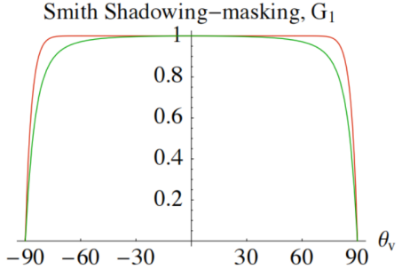 而生剩余的1/(1+Λ(ν))则是Smith遮蔽函数的广义形式 ,表示为表面斜率上的积分: