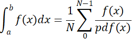 将该概率密度函数函数代入到上文中的积分,可以将蒙特卡洛积分的形式简化: