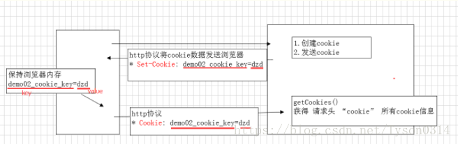 servlet创建cookie,保存少量数据,发送给浏览器。 浏览器获得服务器发送的cookie数据,将自动的保存到浏览器端。 下次访问时,浏览器将自动携带cookie数据发送给服务器。