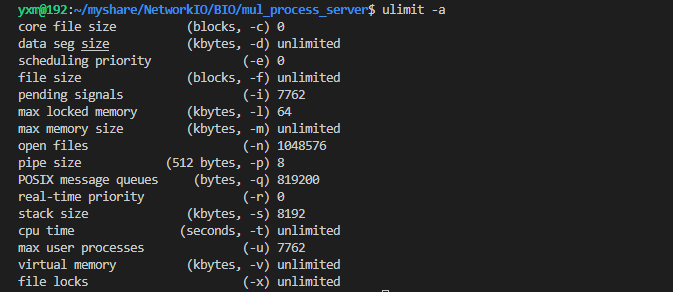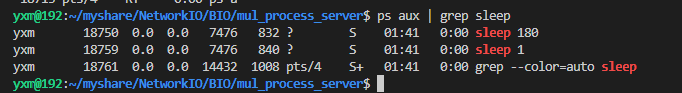 yxm@192:~/myshare/NetworkIO/BIO/mul_process_server$ ./server # 运行程序