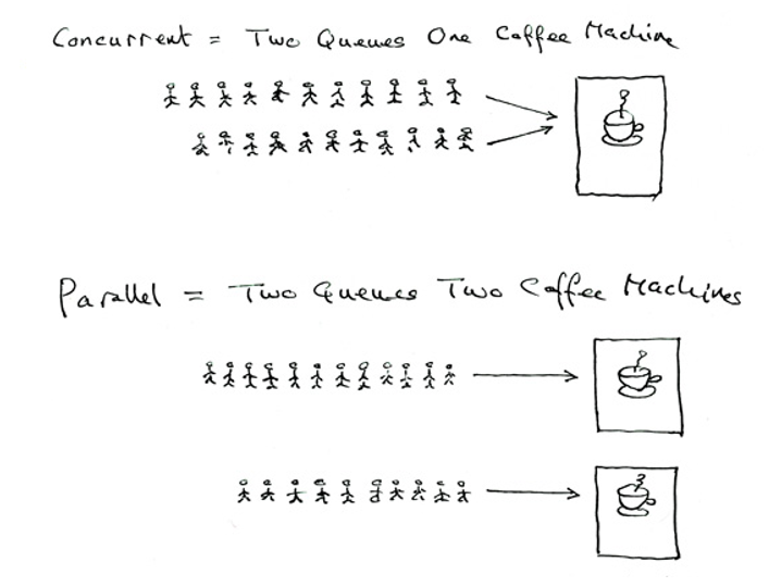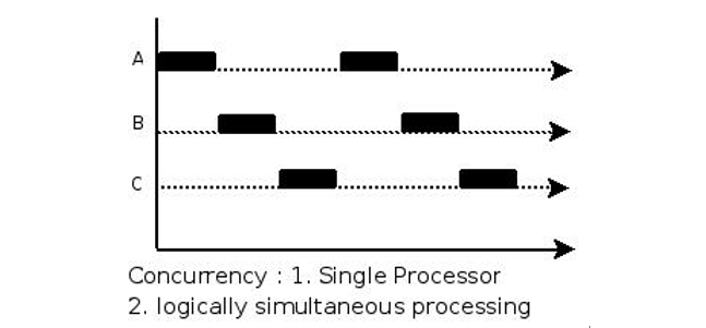 指在同一时刻只能有一条指令执行,但多个进程指令被快速的轮换执行,使得在宏观上具有多个进程同时执行的效果,但在微观上并不是同时执行的,只是把时间分成若干段,使多个进程快速交替的执行。