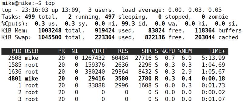 top 命令用来动态显示运行中的进程。top 命令能够在运行后,在指定的时间间隔更新显示信息,可以在使用 top命令时加上 -d 来指定显示信息更新的时间间隔。在top命令执行后,可以按下按键得到对显示的结果进行排序:
