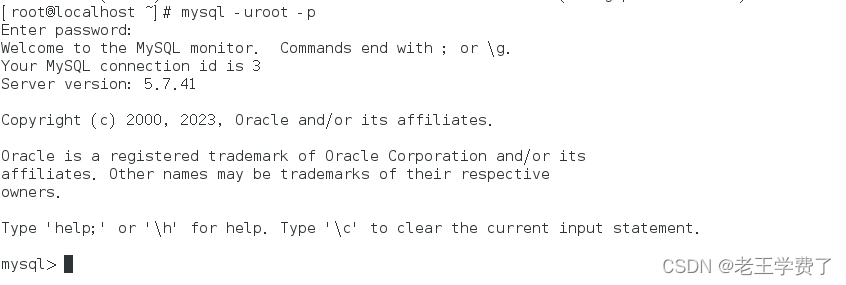 Server version: 5.7.41 MySQL Community Server (GPL)Copyright (c) 2000, 2023, Oracle and/or its affiliates.