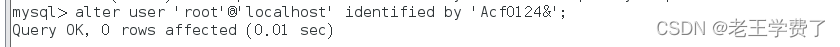 如:alter user 'root'@'localhost' identified by 'Acf0124&';