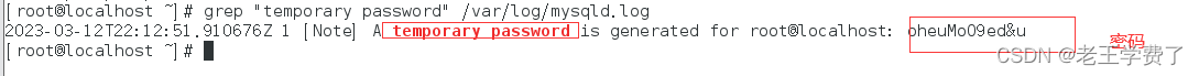 # 通过隔热片命令 在/var/log/mysqld.log文件中,通过temporary password关键字得到初始密码