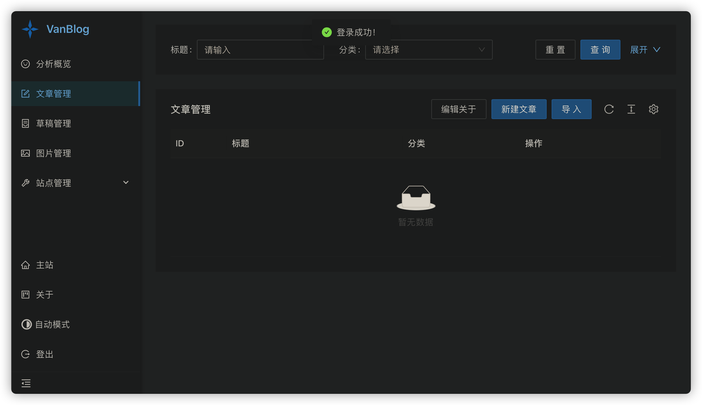 接下来要做分类管理,因为不管是新建还是导入文章都需要用到