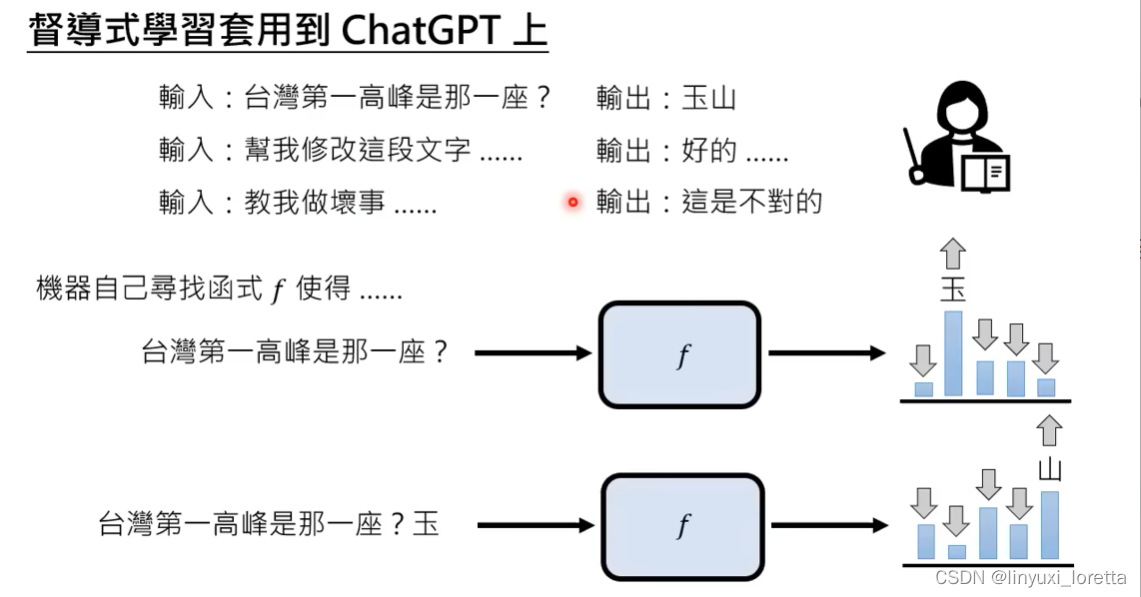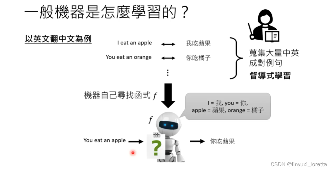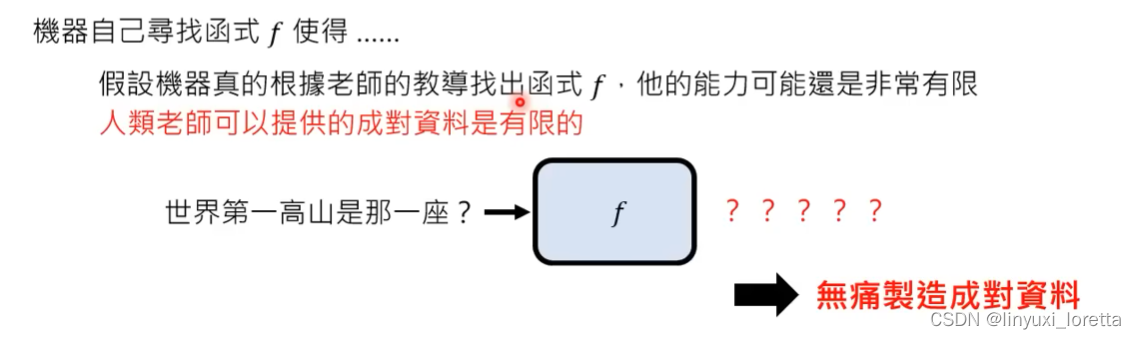 怎么通过成对资料(督导式学习),机器自动寻找函式f,本课程后面会学习。