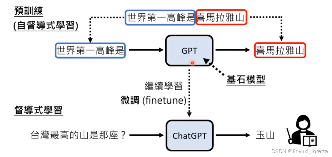 Chat-GPT背后的关键技术:预训练(Pre-train)。又叫督导式学习(Self-supervised Learning)、基石模型(Foundation Model)