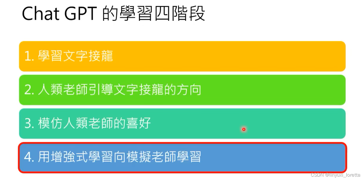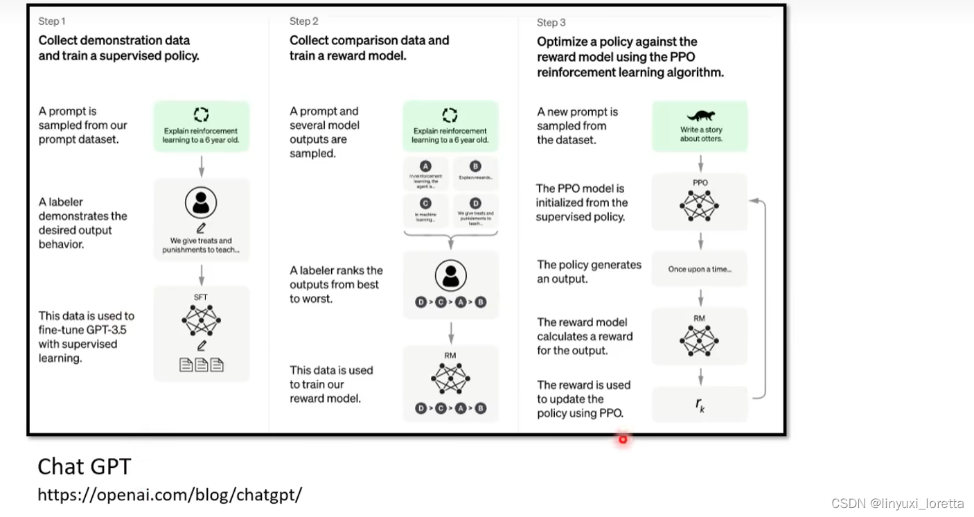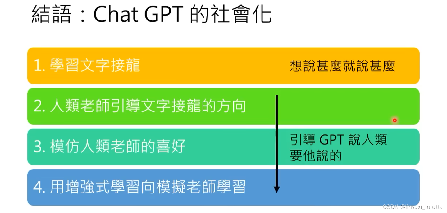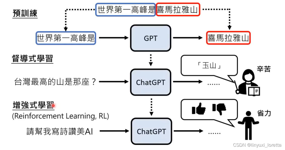 总结: ChatGPT是在自督导式学习/预训练/基石模型的基础上,加入微调(finetune)/督导式学习,再加上RL(ppo算法)。