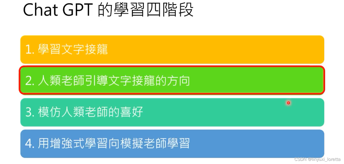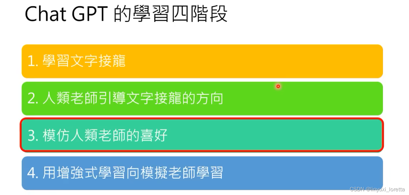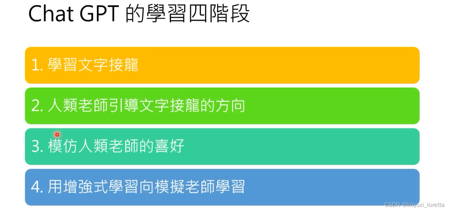 总结: ChatGPT是在自督导式学习/预训练/基石模型的基础上,加入微调(finetune)/督导式学习,再加上RL(ppo算法)。