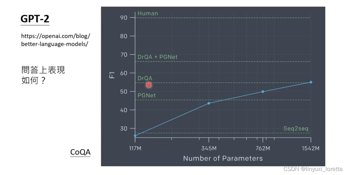 测试在CoQA问答资料集上,具备了一定回答问题的能力。
