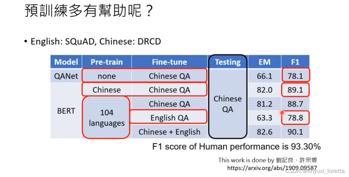 下面这个实验是测试在DRCD中文阅读能力理解测验资料库上。