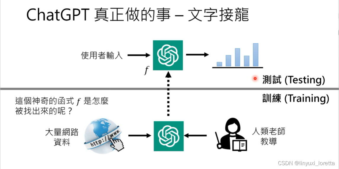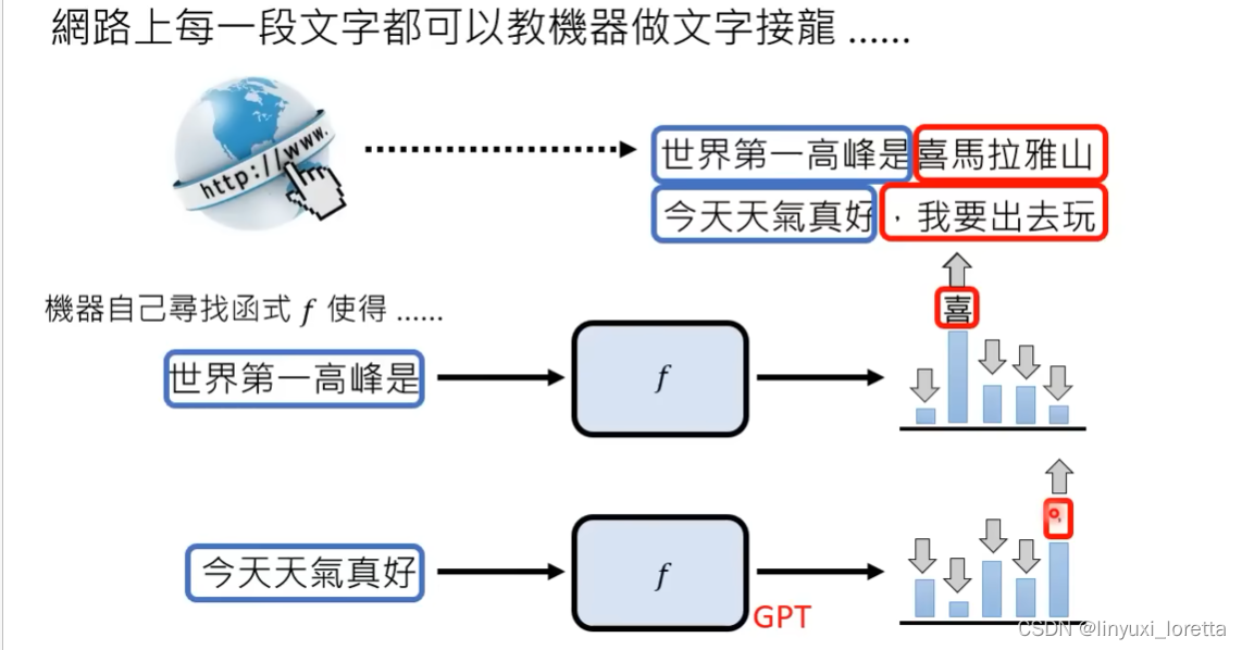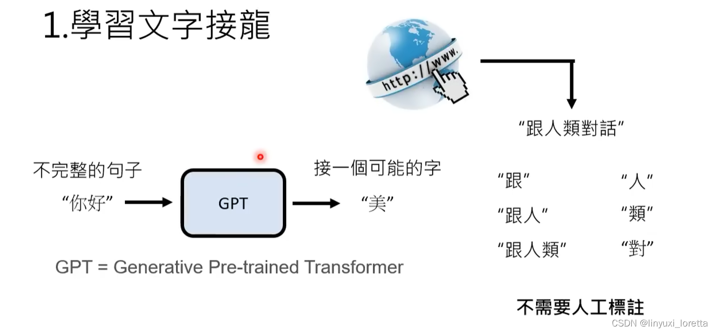 ChatGPT的前身GPT,就是单纯从网络上大量资料来学习做文字接龙。