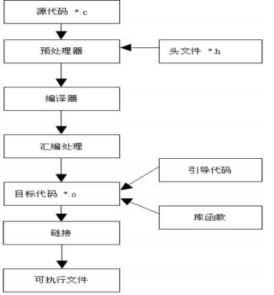 //最后将汇编语言原始程序(*.s)和一些库函数整合成( *.exe) 示例1:几种编译过程。