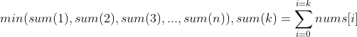 对于本题,可以转化为求一类最小值问题,即前缀和中出现的最小值,即在遍历整个数组时,可能出现的最小值,即