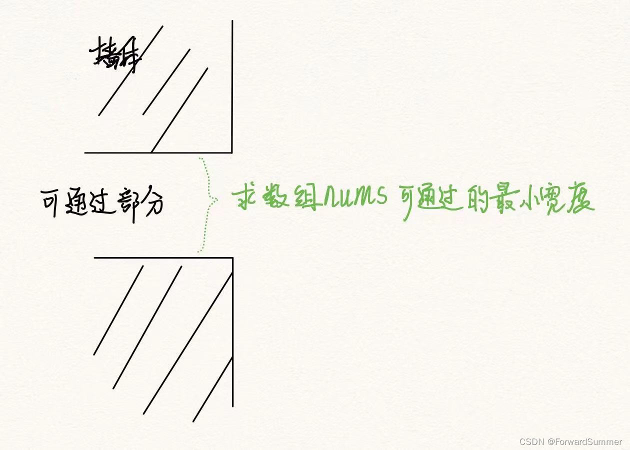 只要最小值能够满足要求,那么在其他位置上也可以满足要求,上述出现的sum(1)~sum(n)即为典型的前缀和的概念,换个思路,此题目在求能使得数组通过的最小宽度,即
