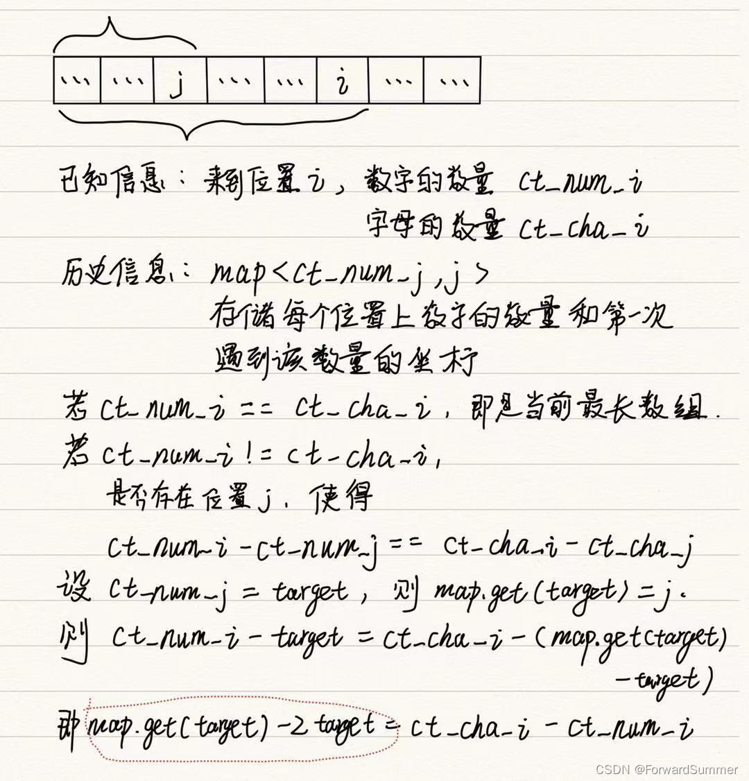 (2)注意此题存储的是ct_num_i - ct_cha_i,因为只存储一个类型的数量,会导致无法处理未知值,详情可看下方图片中的红色虚线框,而存储差值就比较方便,因为当满足题目要求时,我们有: