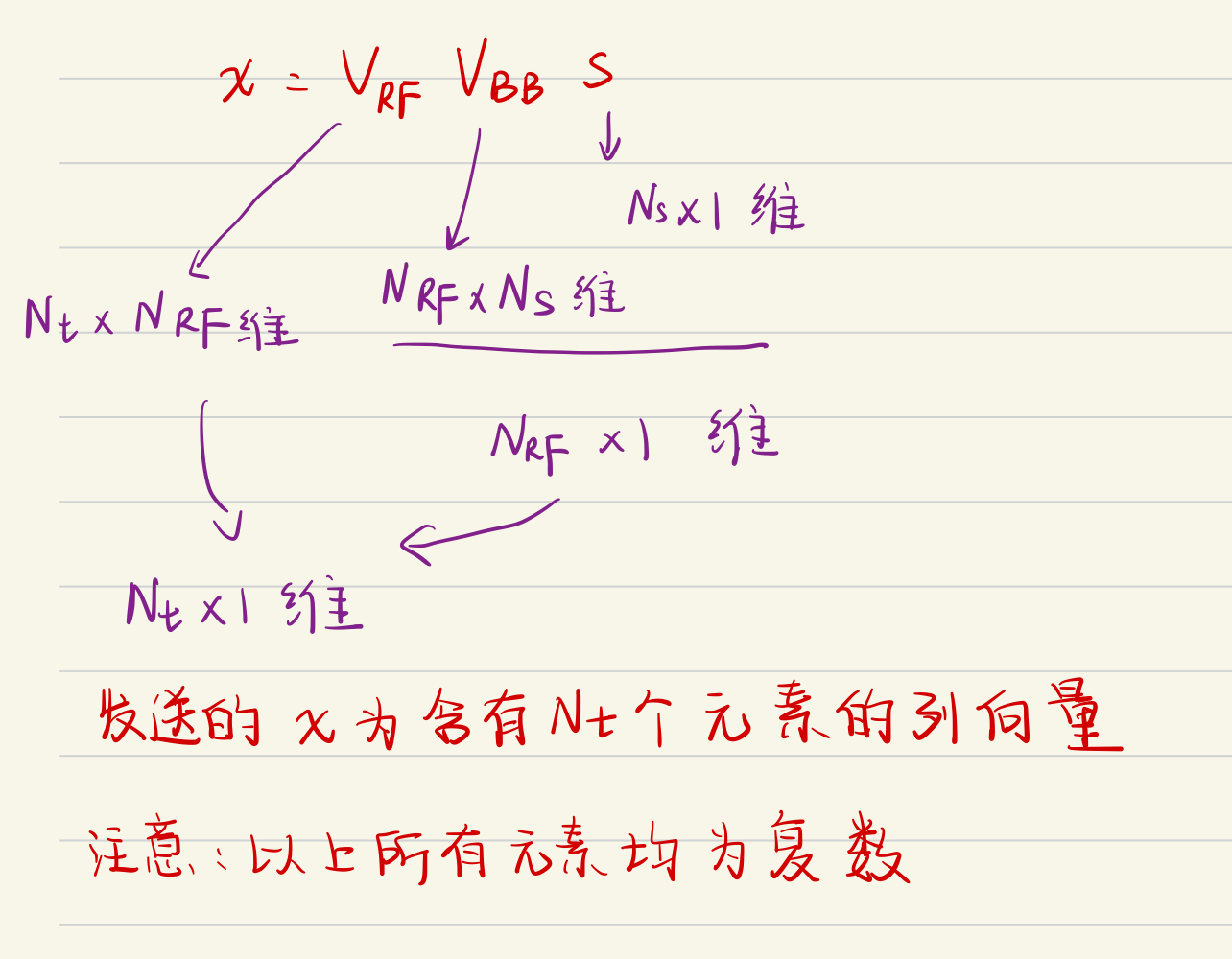 信号s首先经过数字域预编码,接着经过模拟域预编码,最后发送端的发送信号为: