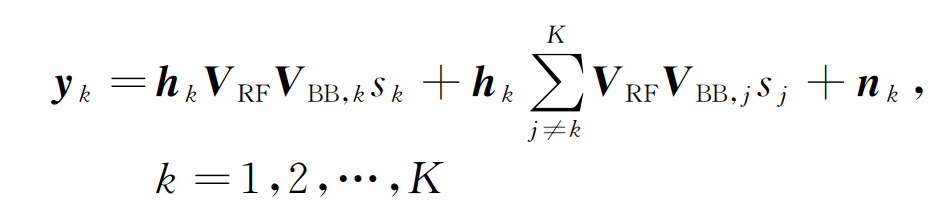 用户k希望收到的消息为,其他的消息均可视为干扰,经过信道后,信号为: