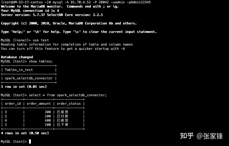CREATE TABLE `spark_selectdb_connector` (`order_id` varchar(30) NULL,`order_amount` int(11) NULL,`order_status` varchar(30) NULL