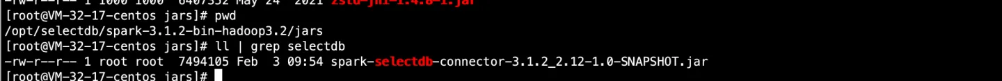 将spark-selectdb-connector-3.1.2_2.12-1.0-SNAPSHOT.jar放到/opt/selectdb/spark-3.1.2-bin-hadoop3.2/jars目录下