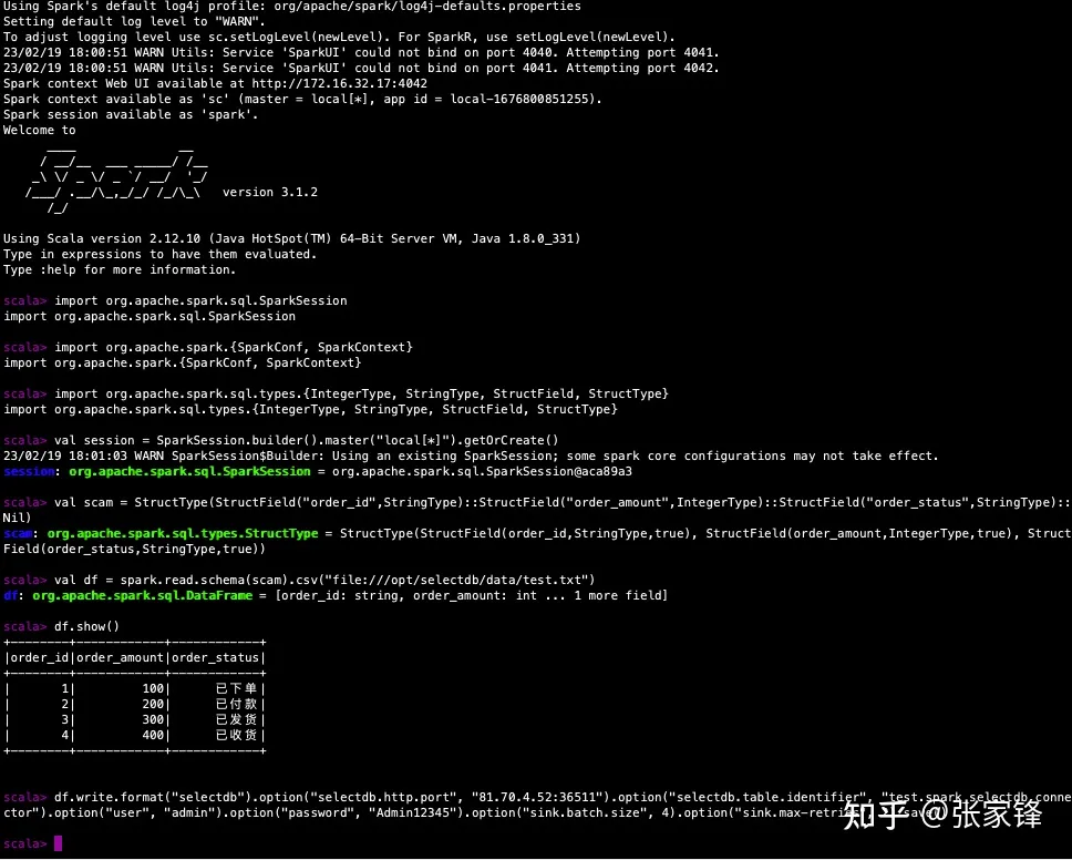 我们以 spark-shell 的方式将我们的测试数据导入到 SelectDB Cloud 的数据表中: