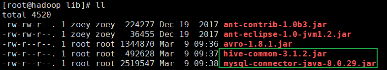 [root@hadoop lib]# cp /opt/soft/hive312/lib/hive-common-3.1.2.jar ./