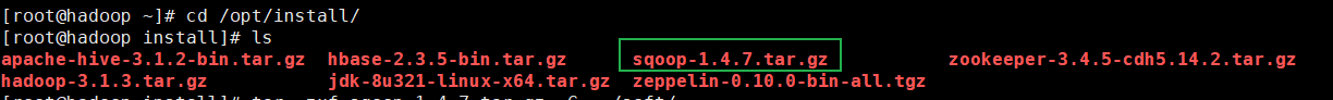 [root@hadoop install]# tar -zxf sqoop-1.4.7.tar.gz -C ../soft/