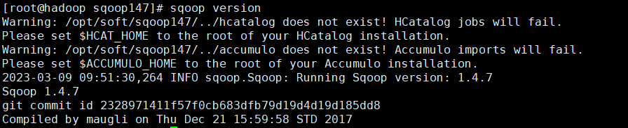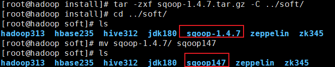 [root@hadoop soft]# mv sqoop-1.4.7/ sqoop147