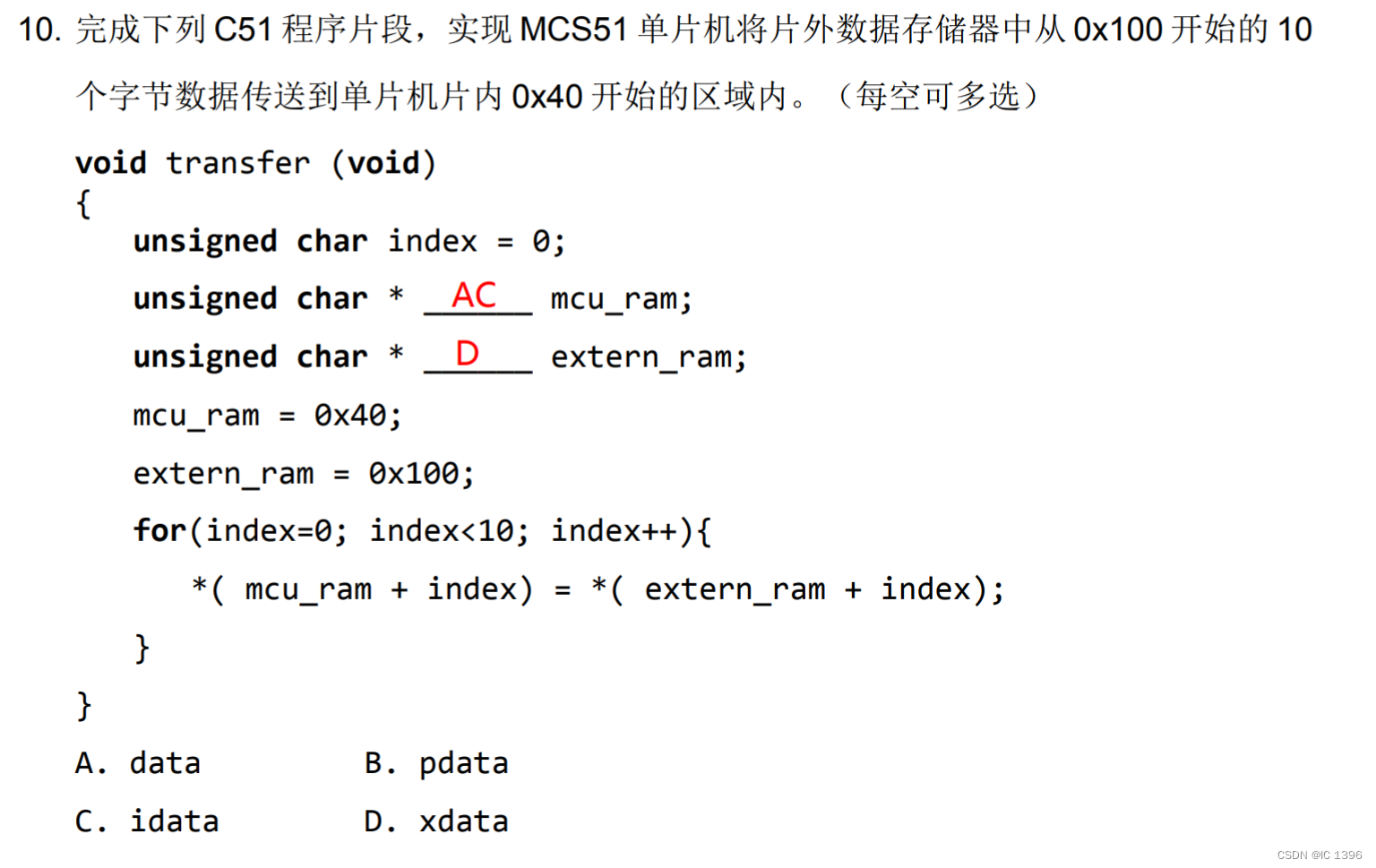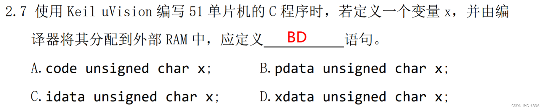 ③xdata:将数据存储在外部0x0000 - 0xffff RAM空间,用DPTR访问。