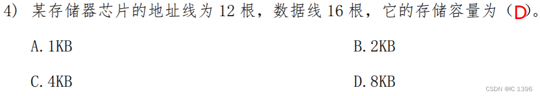 地址线12根,表示能指示2^12个内存单元;而数据线16根,表明通过数据线每次可以传送16位(每根线每次只能传送1位),即2B(16bit= 2*8bit = 2B),那么可以理解为内存单元的大小等同于数据线每次的传送位数,同样为2B,所以主存容量为2^12*2B=8KB。