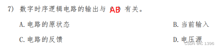 时序逻辑电路在逻辑功能上的特点是任意时刻的输出不仅取决于当时的输入信号,而且还取决于电路原来的状态,与以前的输入有关。