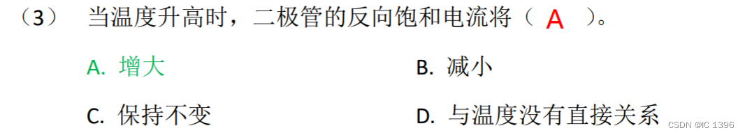 当二极管加反向电压时,通过 PN 结的只有少数载流子的漂移运动所形成的漂移电流。在常温下,由于少数载流子数目极少,在不太大的反向电压下已全部通过 PN结,因而,即使反向电压再升高,反向饱和电流仍保持很小的数值不变。当环境温度升高时,少数载流子迅速增多,电流也明显增大。