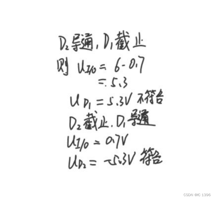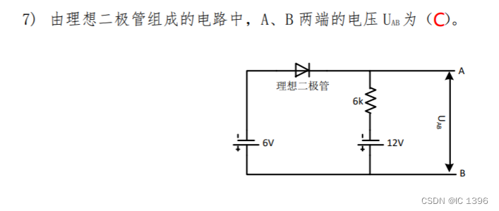 二极管导通,AB两端电压等于第一个电源的电压,不过方向相反,需要加负号