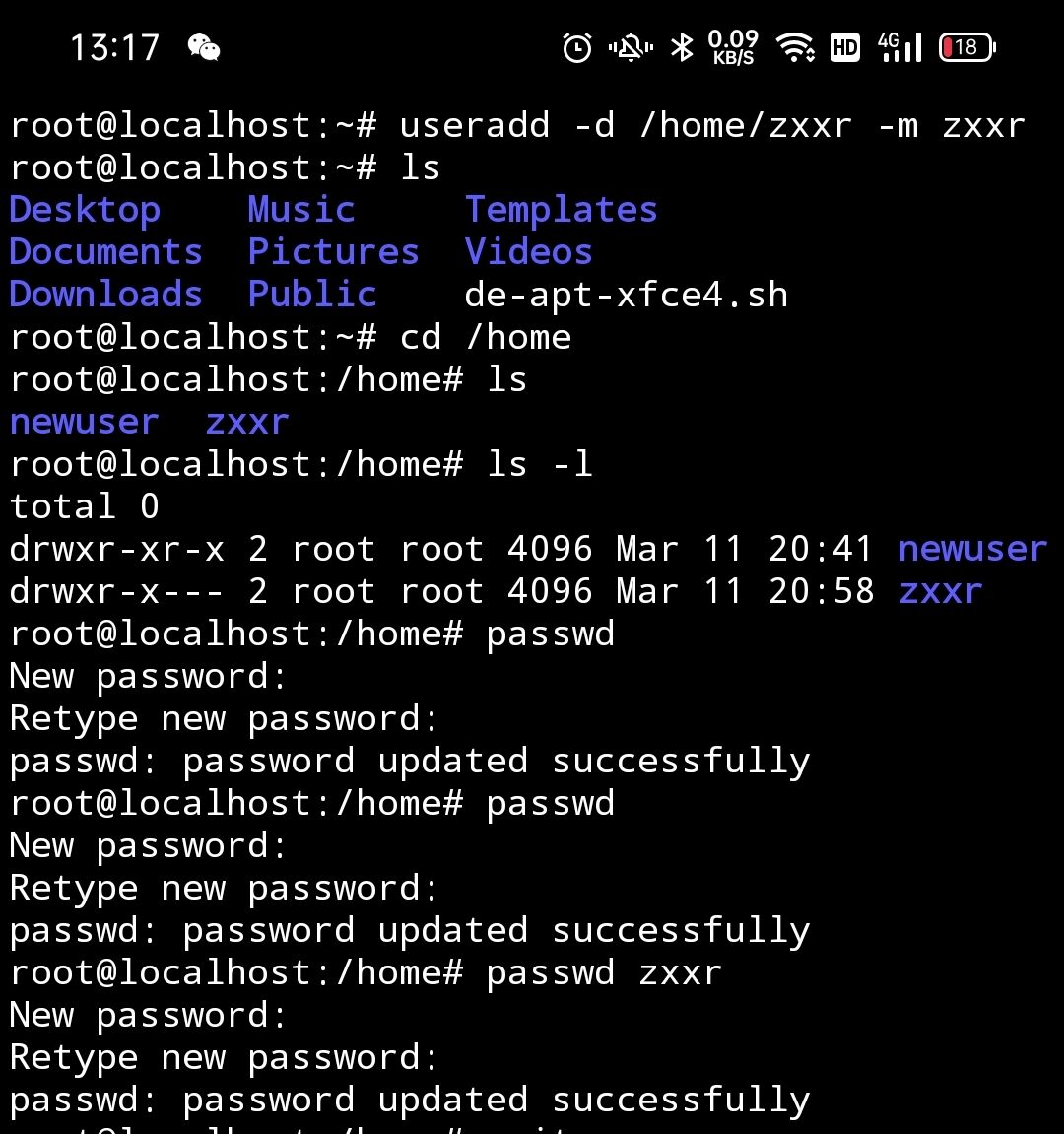 输入passwd zxxr,则输入的密码是针对zxxr(新用户)的密码。