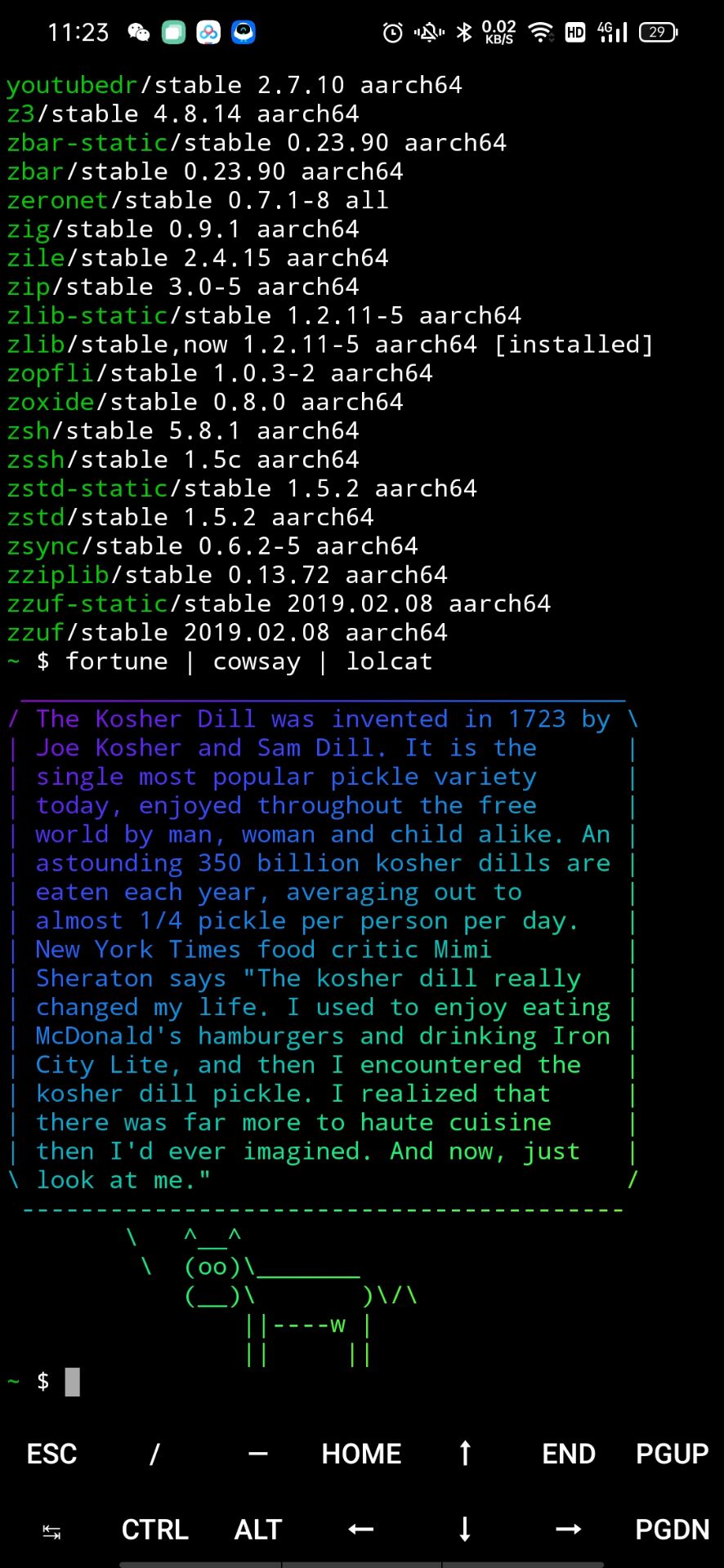 $ apt install fortune$ apt install cowsay$ apt install lolcat