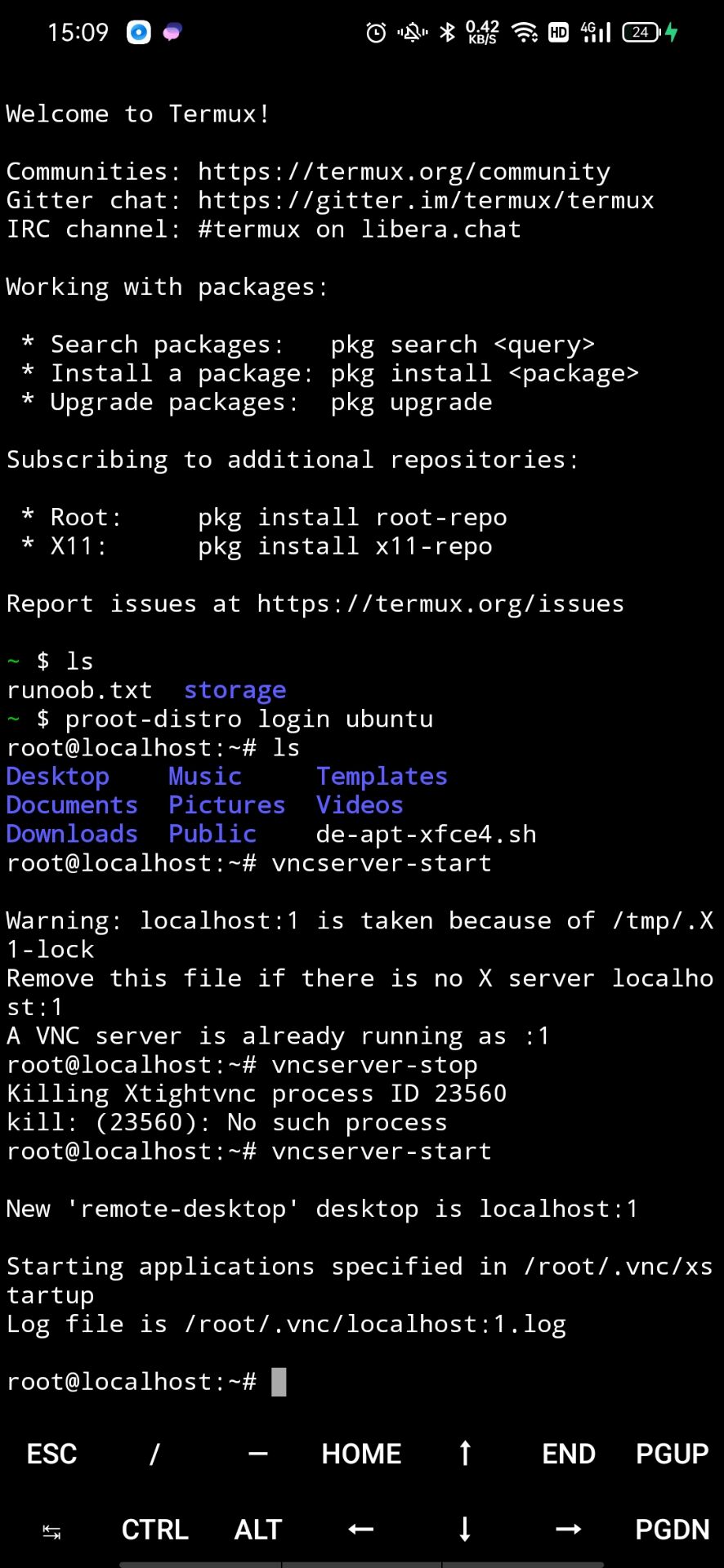 点击右上角的 叉号,即可退出VNC Viewer,但注意此时并未完全退出,需要在 Termux的linux系统 (即root@localhost:~# 后 )输入: