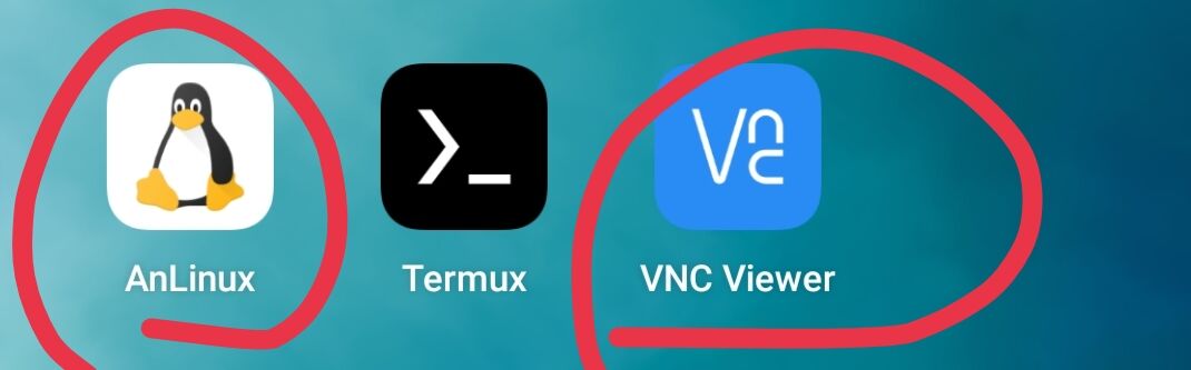 安装桌面则需要用到另外两个软件(红圈),不过先别急着打开VNC Viewer,只需先打开AnLinux。