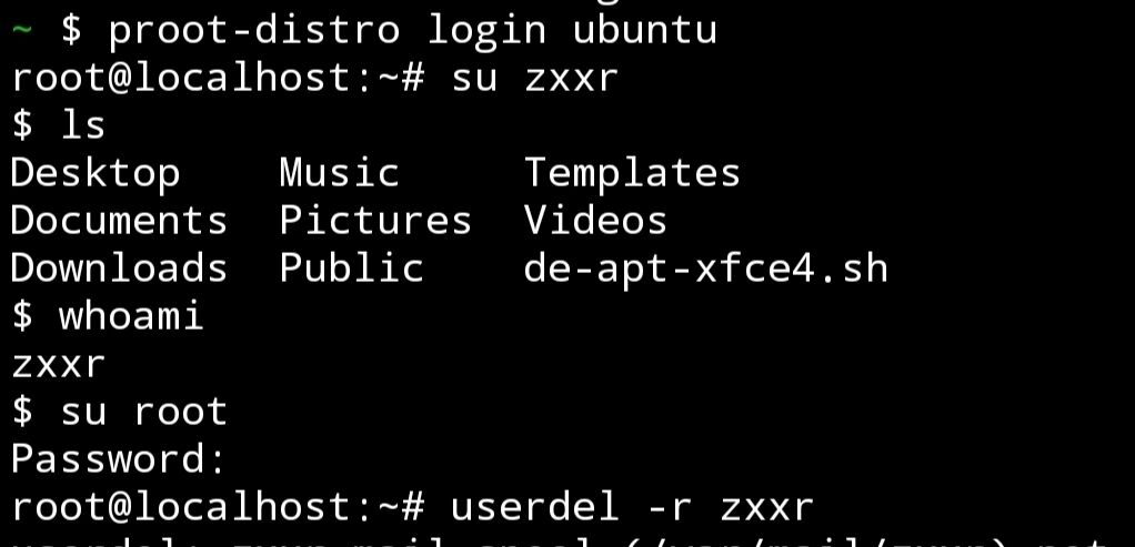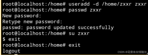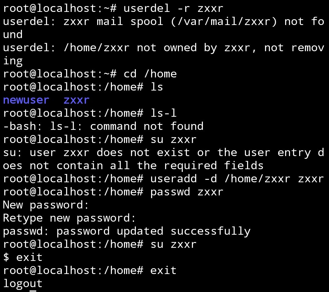 即可删除zxxr用户,再输入su zxxr 则出现:![]()