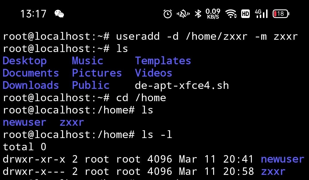 如果还想在home/zxxr目录下创建新用户zxxr,则如下图: