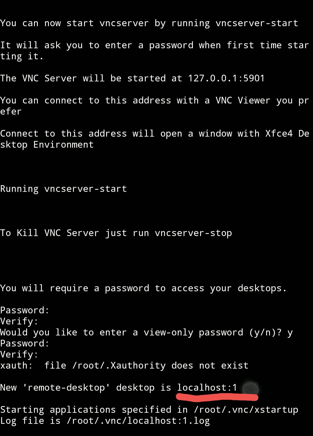 最后会出现设置输入桌面系统密码,该密码用于连接VNC Viewer软件。