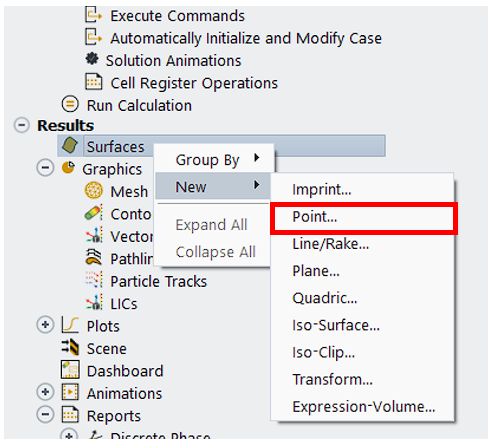 在Fluent左侧树状菜单”result”部分,右键点击“surfaces”,可手动创建。