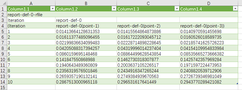 输出的OUT文本文件中,其保存方式也是每个点分别保存。