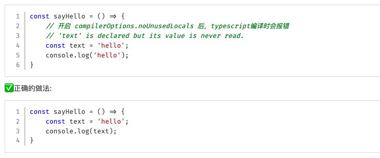 noUnusedLocals:开启后,当Ts发现未使用的局部变量时,会给出一个编译时错误('