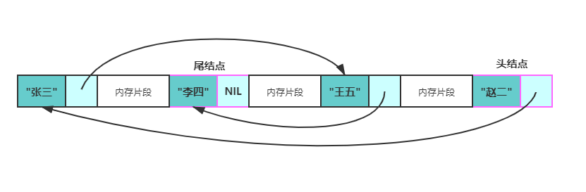 像这样,左边不带 .next 的是类似于赋值语句,自己的指针指向右边位置。