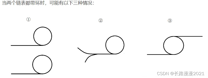 若有两个链表,则他们的带环情况有以下三种可能: