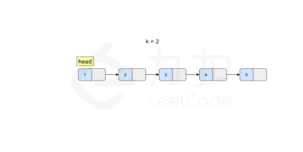 题目描述:给你链表的头节点 head ,每 k 个节点一组进行翻转,请你返回修改后的链表。k 是一个正整数,它的值小于或等于链表的长度。如果节点总数不是 k 的整数倍,那么请将最后剩余的节点保持原有顺序。不能只是单纯的改变节点内部的值,而是需要实际进行节点交换。