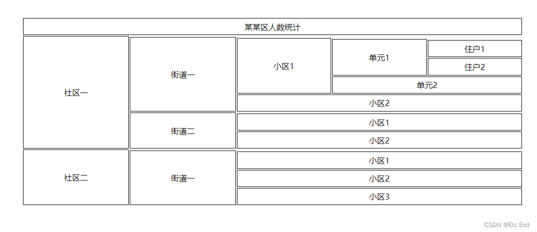 上面的列子是写死的,所以实现起来比较的简单,接下来就需要获取动态的数据,动态进行行或者列的合并实现复杂的表格展示。组件中props里面的参数:data就是数据源,level表示整个数据的层级,currentLevel表示当前递归到第几层。
