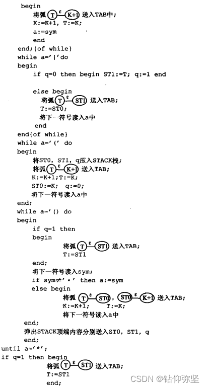 在上面的代码中,我们使用一个字符串变量 source 存储输入的字符串,并使用一个整数变量 index 来跟踪当前字符在字符串中的位置。GetChar 过程返回下一个字符,并将 index 增加 1。GetBC 过程用于跳过字符串中的空白字符,包括空格、制表符、回车符和换行符。Concat 过程接受两个字符串参数 s1 和 s2,并将它们拼接在一起返回一个新的字符串。在 Concat 过程中,我们使用一个循环将 s1 中的字符逐一添加到返回字符串中,然后再将 s2 中的字符逐一添加到返回字符串中。